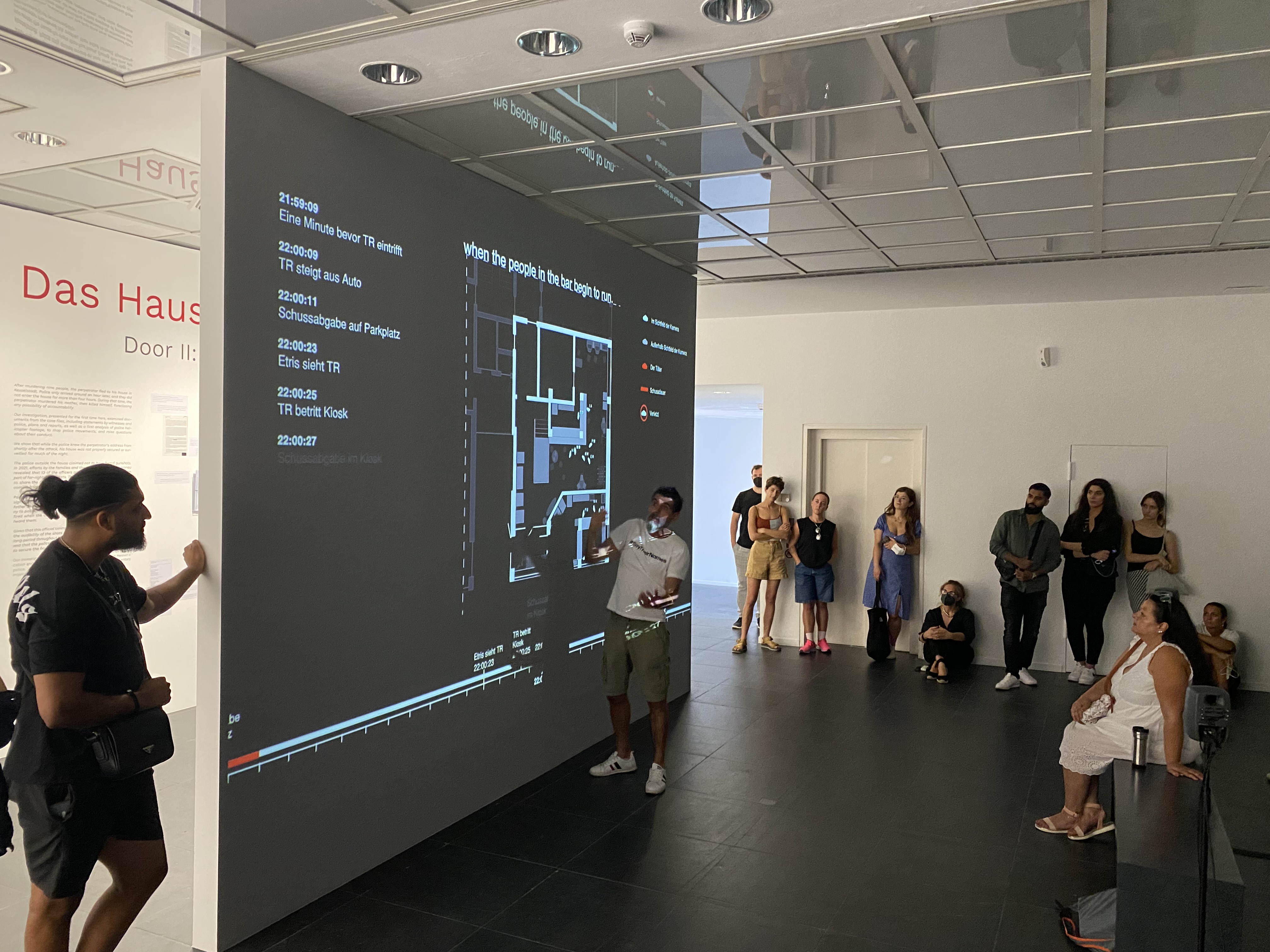 Diese Antwort der Zivilgesellschaft – zu der auch diese Ausstellung gehört – ist ein offener, niemals abge-schlossener, sondern sich stetig entwickelnder Prozess. Die Ausstellung hat das Ziel, neue Öffentlichkeiten mit den realen Erfahrungen, dem verkörperten Wissen, dem Engagement und der Beharrlichkeit der Betroffenen rassistischer Gewalt ins Gespräch zu bringen. Den Betroffenen und ihren Unterstützer*innen in ihren Ermittlungen innovative Untersuchungsmethoden an die Hand zu geben, bezeichnen wir als »Gegen-Forensik«.